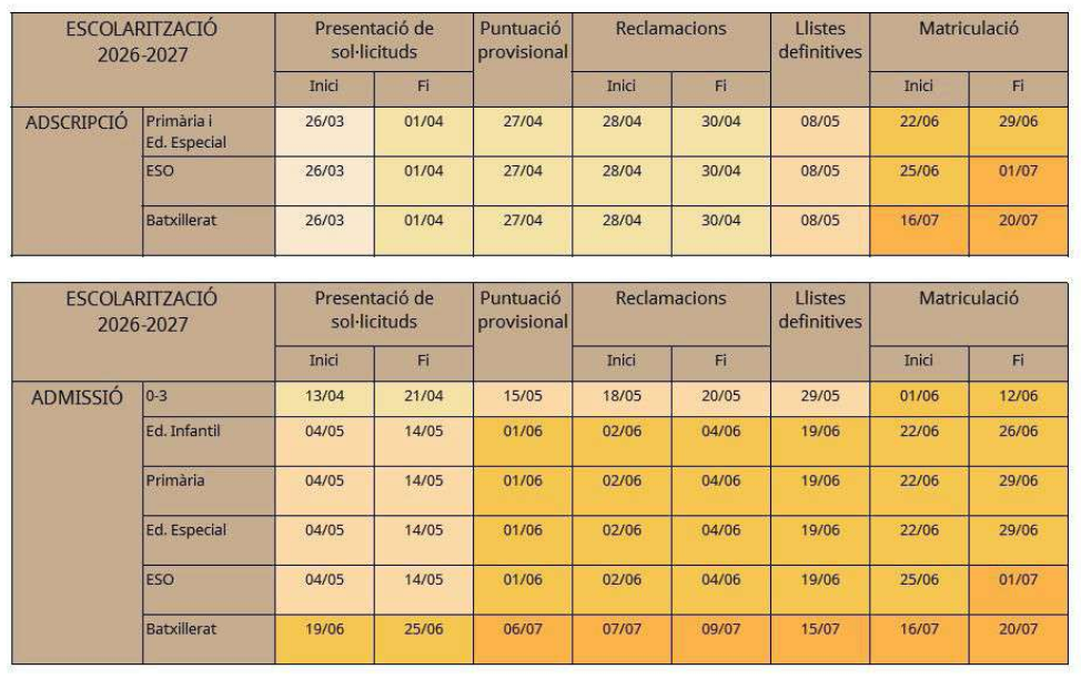 09/05/25Presentació de sol·licituds 2n cicle d’educació infantil i primària: 12/05/25 fins 20/05/25