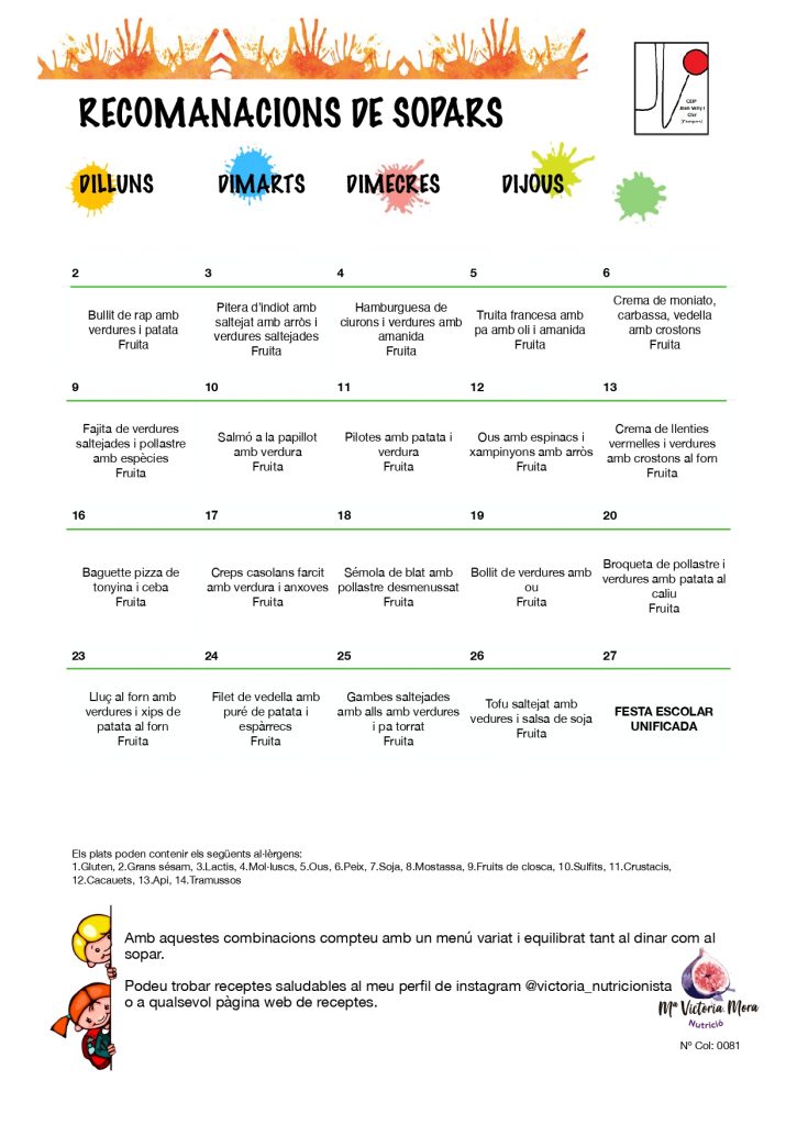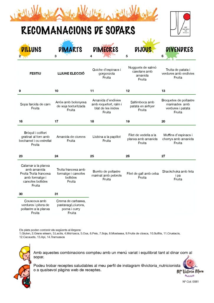 MENÚ MENSUAL MENJADOR